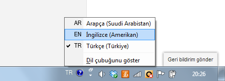 Anasayfa/Pratik Arapça/Arapça Diyaloglar/71 BİLGİSAYARINIZDA KLAVYEYİ ARAPÇA OLARAK KULLANMAK Arapça Diyaloglar 71 BİLGİSAYARINIZDA KLAVYEYİ ARAPÇA OLARAK KULLANMAK Bilgisayarınızda klavyeyi Arapça olarak kullanabilmek için, bilgisayarınıza windows’u yükleme aşamasında arapçayı da yüklemiş olmanız gerekir. Eğer yüklemediyseniz, dil seçenekleri arasında görünmeyecektir. Eğer yüklediyseniz, birkaç basit adım sonrası klavyeyi Arapçaya ayarlayabilirsiniz. Sizin için hazırladığım bu resimli talimatları sırayla takip edin. Adım 1: Bilgisayarın en solunda alttaki bayrak simgesini tıklayın. Sağ taraftaki (Denetim masası) nı tıklayın. Adım 2: Denetim masasında (Saat, dil ve bölge) seçeneğini tıklayın. Adım 3: (Bölge ve dil) bölümünde (Klavyeleri veya diğer giriş yöntemlerini değiştir) seçeneğini tıklayın. Adım 4: (Klavyeler ve diller) bölümünden (klavye değiştir)i tıklayın. Adım 5: (Genel) bölümünde (ekle)yi tıklayın. Adım 6: (Arapça Suudi Arabistan) ı tıklayın. Yanındaki artı işaretine basınca açılan bölümde (klavye) yazısının yanındaki artıya tıklayın. (Arapça 101) in yanındaki kutuya tıklayın Sonra (tamam) ı tıklayın. Türkçe Q klavye: Arapça harflerin çıkış yerleri (klavye düzeni): Artık, bilgisayarınızın klavye dilleri arasına Arapçayı da eklemiş oldunuz. Türkçe yazı yazarken, Arapça metin yazmak isterseniz, ekranın sağ alt köşesinde (tr) simgesini tıklayınca açılan sekmede Arapça da görünecektir. Sol yanına tıklarsanız Arapçayı seçmiş olursunuz. Türkçeye dönmek isterseniz, gene ekranın sol altındaki (tr) simgesini tıklatıp, açılan sekmede ( tr) nin soluna tıklayın. Aşağıda, klavye simgesinin yanında (AR) yazısının olması, klavyenin şu andaki dilinin Arapça olduğunu gösteriyor. Arapça’da klavye için (levhatu’l-mefâtîh) ve ingilizceden alınma (el-kîbord) kelimeleri kullanılıyor. Tuş Miftâh مِفْتَاح Tuşlar Mefâtîh مَفَاتِيح Levha, tabaka, plaka, tahta Levha لَوْحَة Klavye Levhatu’l-mefâtîh لَوْحَةُ الْمَفَاتِيح Keyboard (İngilizce: klavye demektir) El-kîbord اَلْكِيبُورْد Arapça klavye Levhatu’l-mefâtîh el-arabiyye لَوْحَةُ الْمَفَاتِيحِ الْعَرَبِيَّة Türkçe klavye Levhatu’l-mefâtîh et-turkiyye لَوْحَةُ الْمَفَاتِيحِ التُّرْكِيَّة Türkçe klavye El-kîbord et-turkiyy التُّرْكِيُّ اَلْكِيبُورْد Arapça klavye El-kîbord el-arabiyy الْعَرَبِيُّ اَلْكِيبُورْد Arapça Klavyede Harflere Hareke Vermek İçin Tıklayınız Bu Döküman Enise Sema Gonca Tarafındna Hazırlanmıştır.
