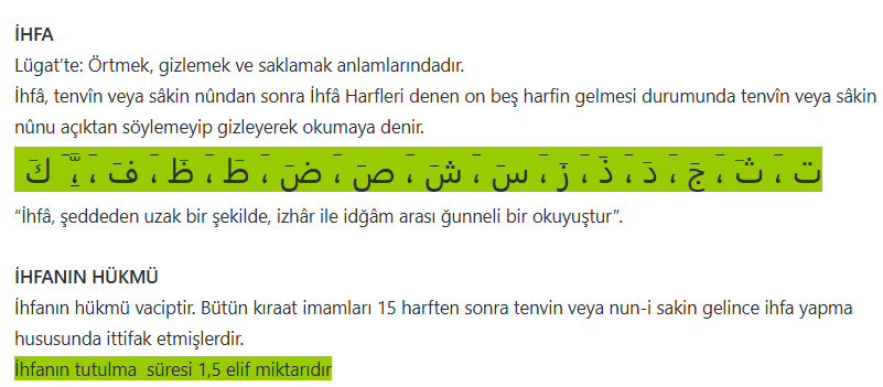 ihfa harfleri nedir ihfa nedir İHFA TECVİDİ ÖRNEKLERİYLE -14